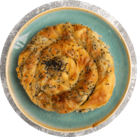 Großes gerolltes Gebäck (Käse, Spinat, Hackfleisch, Kartoffeln)
